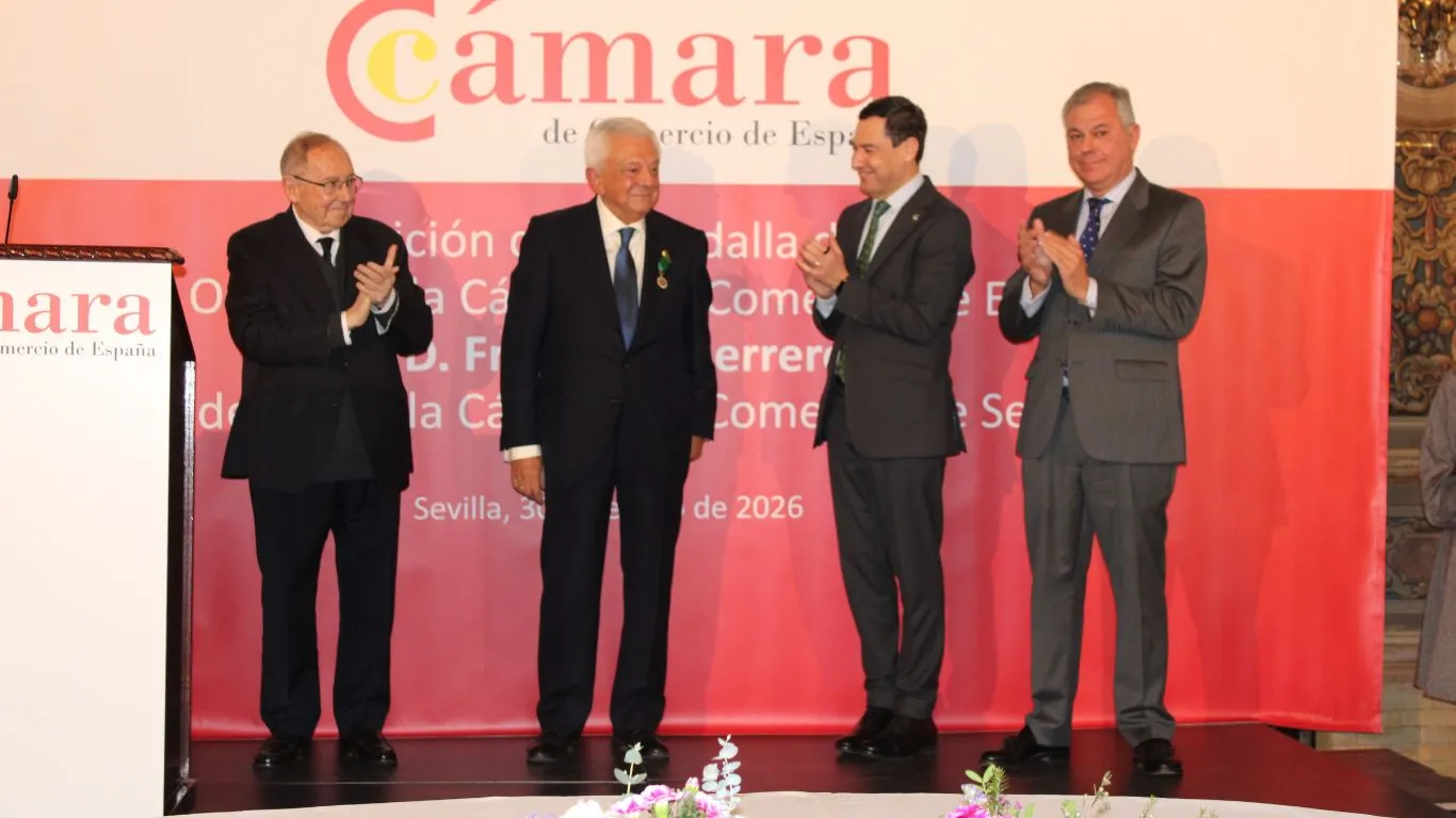 Francisco Herrero ha sido distinguido con la Medalla de Oro de la Cámara de Comercio de España en un acto en Sevilla con presencia de Moreno Bonilla, Sanz y Bonet. #CámarasDeComercio #EmpresasSevilla #Internacionalización #Andalucía #LiderazgoEmpresarial